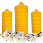 Zestaw 3 ozdobnych świec z naturalnego wosku pszczelego 13/16/25cm x 7 cm