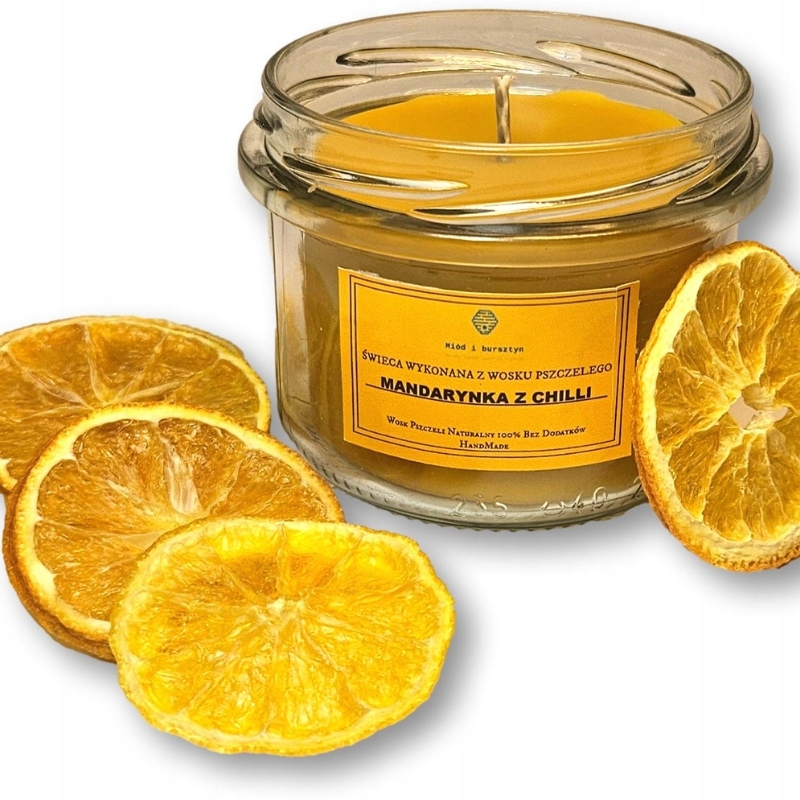 ✅Świeca zapachowa w słoiku z wosku pszczelego o zapachu "MANDARYNKA Z CHILLI" wykonana w 100% z wosku pszczelego