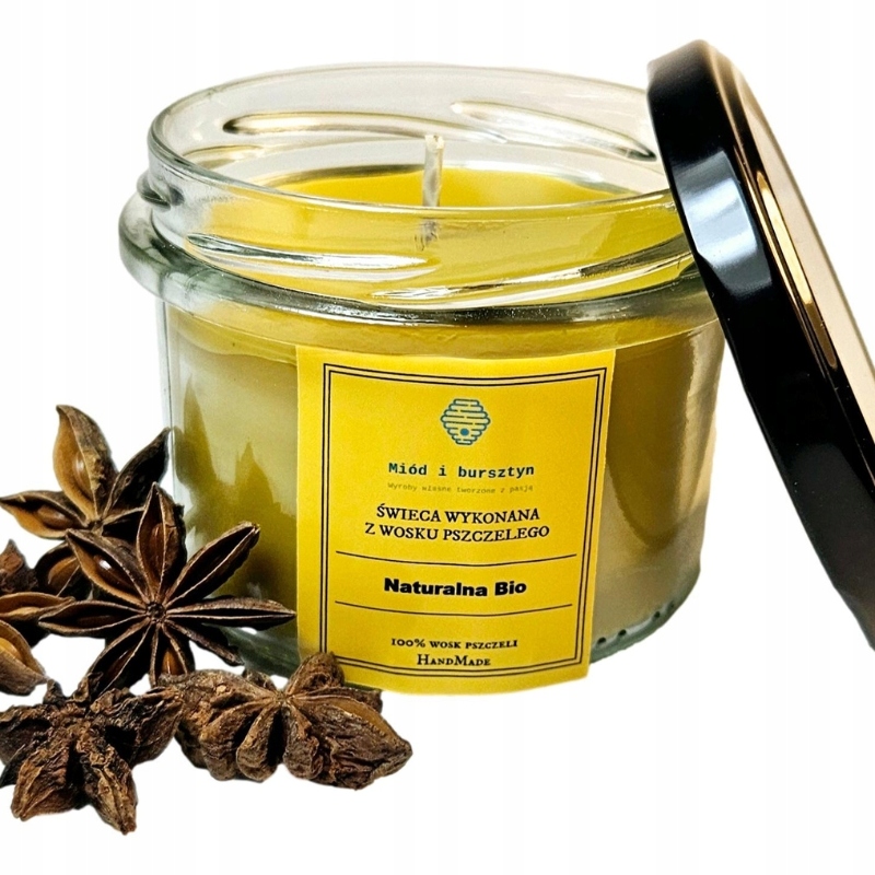 ✅ "Naturalna Bio" to świeca wykonana w 100% wosku pszczelego bez dodatków zapachowych olejków czy ekstraktów. Charakteryzuje się delikatnym miodowym naturalnym zapachem wosku pszczelego.